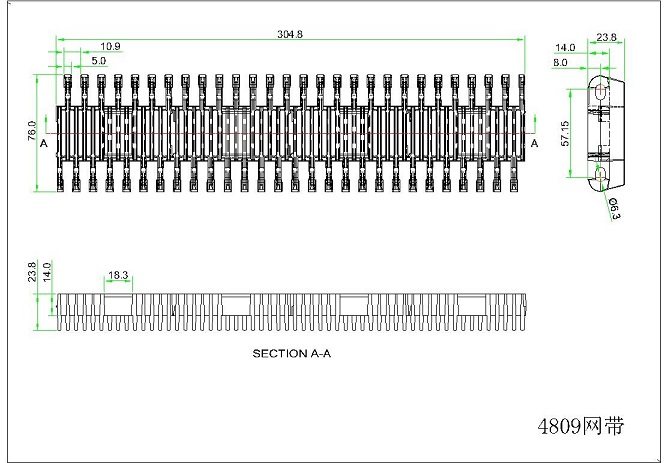 节距57.15,厚度23.8可以选择用不锈钢穿条并加不锈钢加强片。
