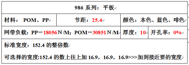 推出瓦楞纸输送带节距25.4厚度10平板和平格形 负载力30851N/M