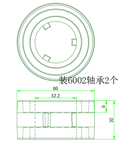 压轮,直径60,厚30,装6002轴承(9*32)2个