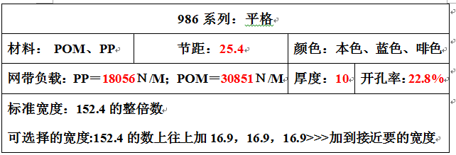 推出瓦楞纸输送带节距25.4厚度10平板和平格形 负载力30851N/M