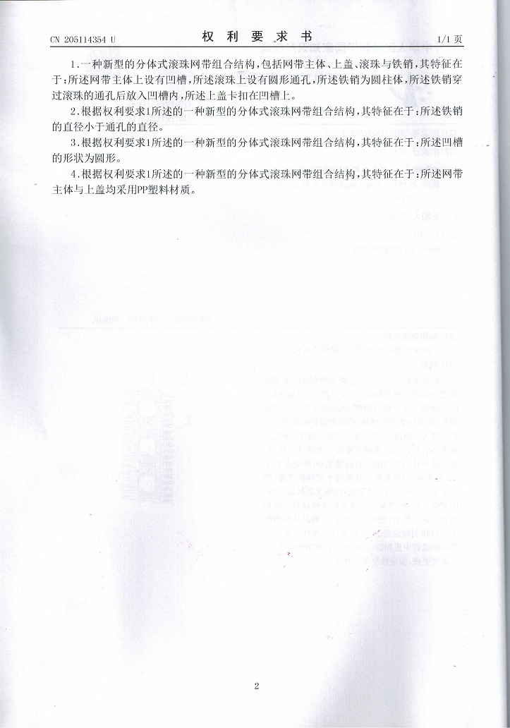 一种新型的分体式滚珠网带组合结构
